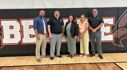Tyler Schaad, Principal, Belpre High School; Jeff Greenley, Superintendent; Tammy Belcher, President/CEO, First Mutual Bank; Cathy Barker, VP Lending Operations Officer, First Mutual Bank; Lance Erlwein, Belpre City Schools Treasurer